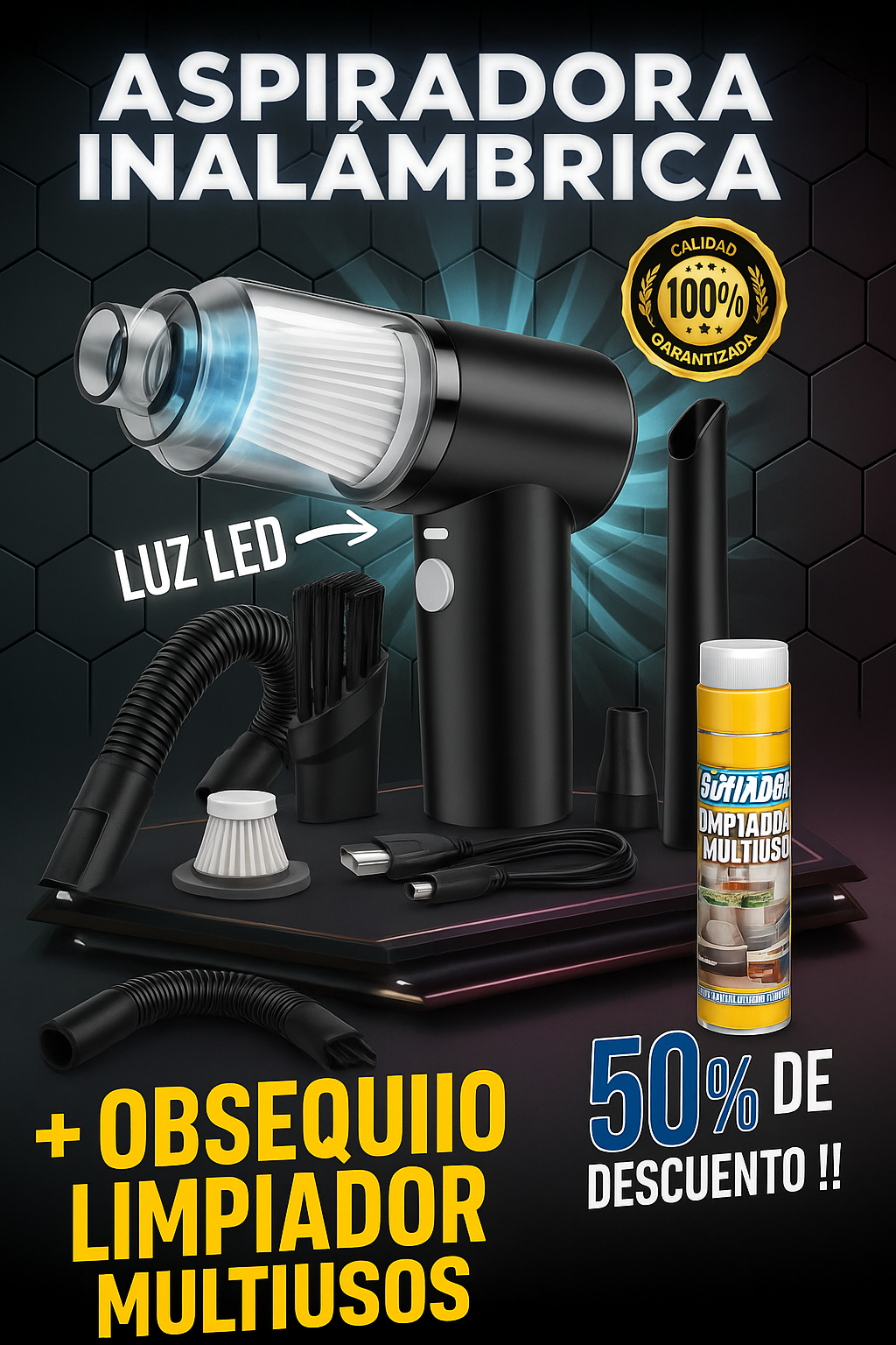 AIRMAX-ASPIRADORA INALAMBRICA PORTATIL + LIMPIADOR MULTIUSOS
