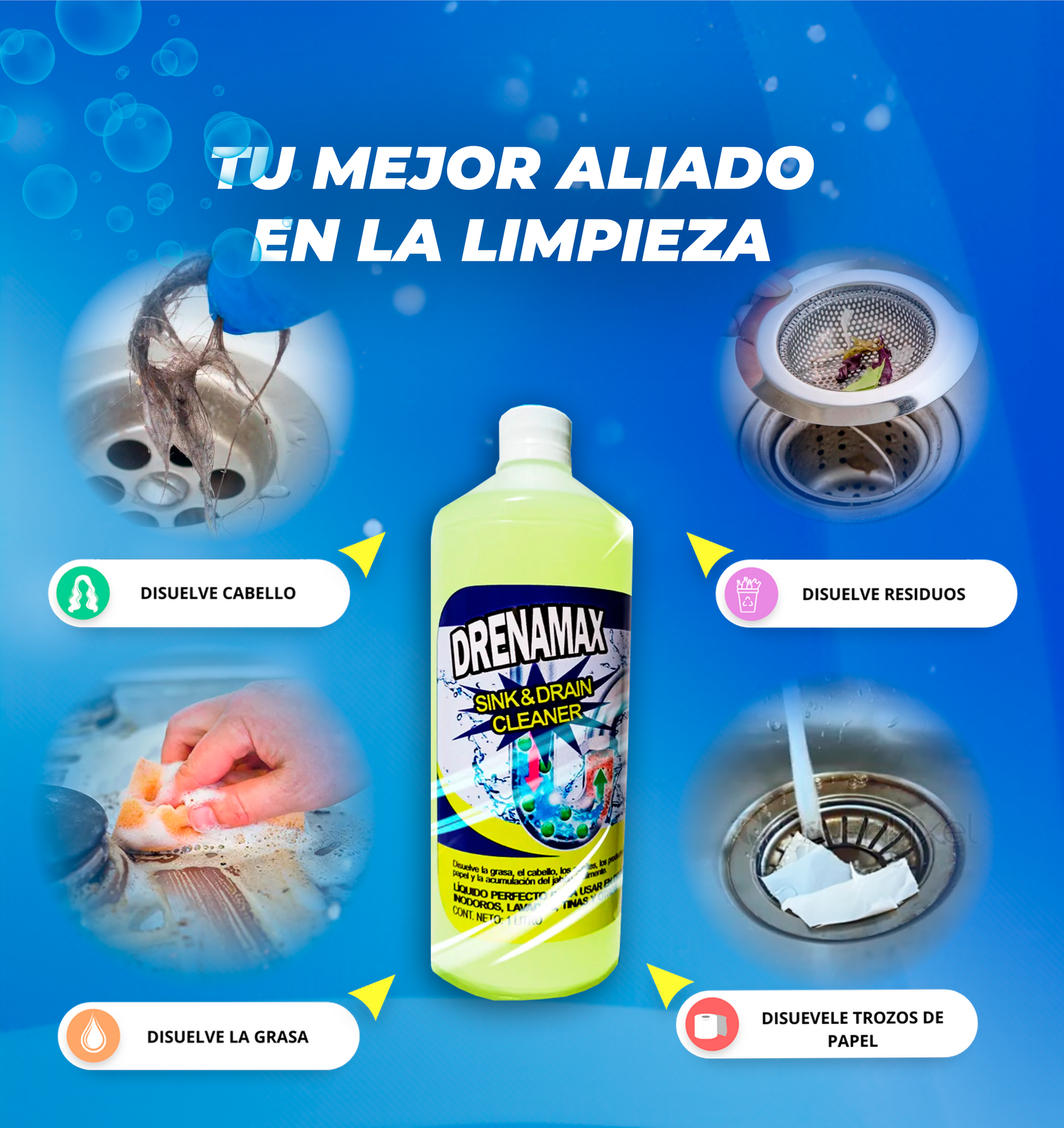 Despídase de los tubos y desagües obstruidos con Drenamax, que disuelve grasa, cabello, jabón, papel y comida en solo 45 minutos.